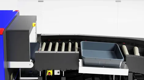 Empty trays from the recheck area can be fed into the automated tray return system by the operator.