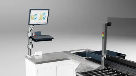 Rejected bags are automatically forwarded to the recheck area for secondary screening. By adding Checkpoint.Evoplus, suspicious areas in bags are electronically marked and classified by the remote operator. This allows for directed search by the on-the-spot operator and reduces waiting times.